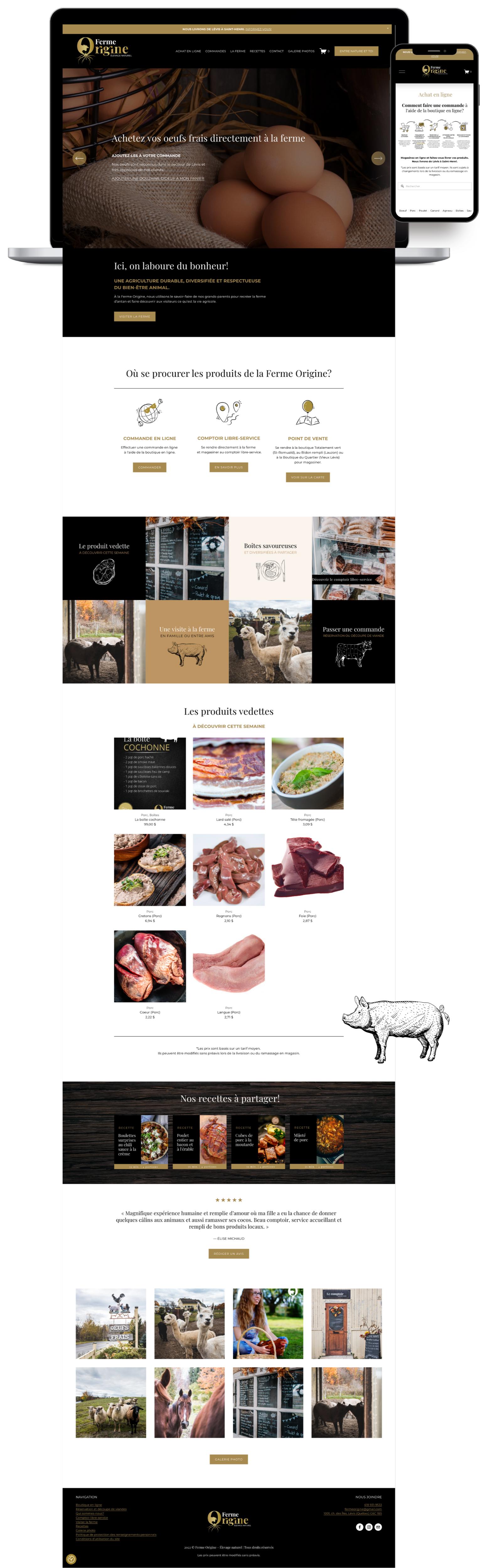 À la Ferme Origine, leur engagement pour une agriculture durable, diversifiée et respectueuse du bien-être animal est au cœur de leur mission. Utilisant le savoir-faire hérité de leurs grands-parents, ils s'efforcent de recréer la ferme d'antan afin d'offrir aux visiteurs une expérience authentique de la vie agricole. Depuis leurs modestes débuts dans une petite grange sans eau courante ni électricité, avec quelques animaux, ils ont élargi leur élevage grâce à un terrain plus vaste et des installations fonctionnelles situées au 1001, chemin des Îles. À la Ferme Origine, ils mettent un point d'honneur à respecter leurs animaux, à cultiver une passion pour l'élevage et l'agriculture, et à offrir une expérience enrichissante et reposante à leurs visiteurs. Ils proposent une viande de qualité issue d'une agriculture durable et diversifiée.